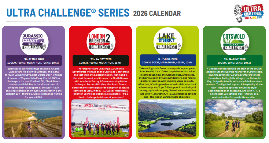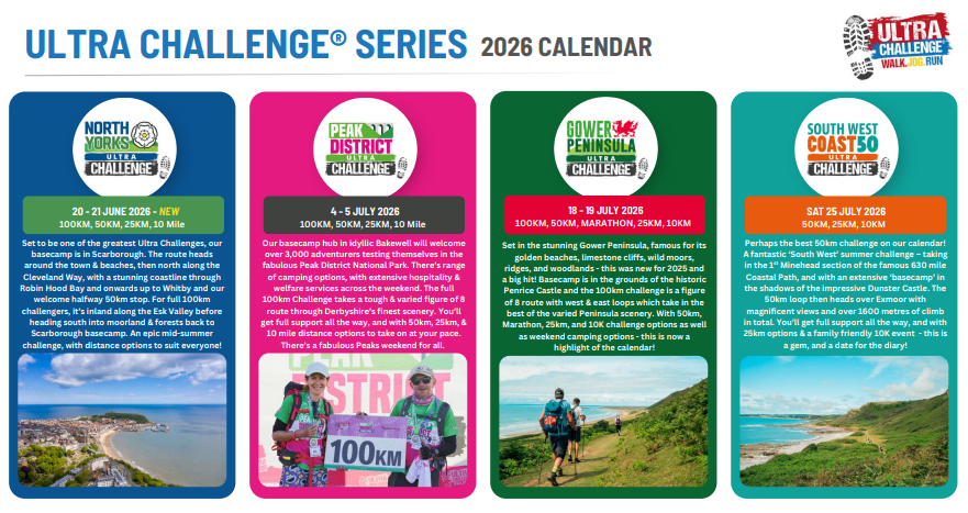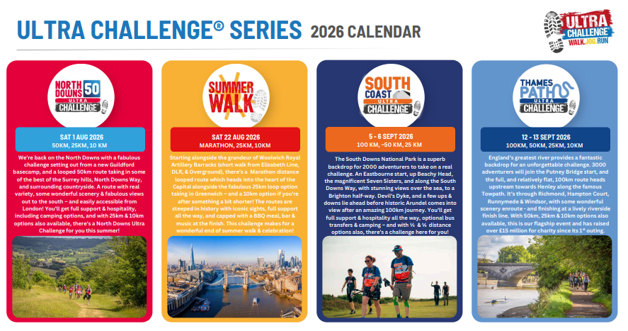 Discover a variety of incredible fundraising opportunities and pick the one that suits you best. Embark on an unforgettable journey with Ultra Challenge Series 2025, where you’ll push your limits on some of the most scenic trails and routes around.